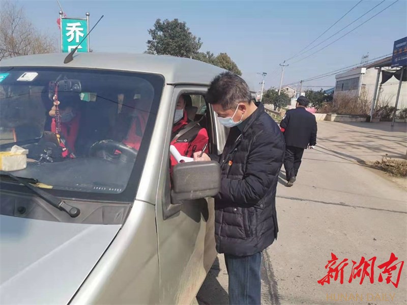 针对春节流动人员多的特点,在全县各重要路口,由公安、交通、卫健、乡村党员干部组成的联合防控组,24小时严格盘查车辆、登记信息、测量体温、劝返行人。