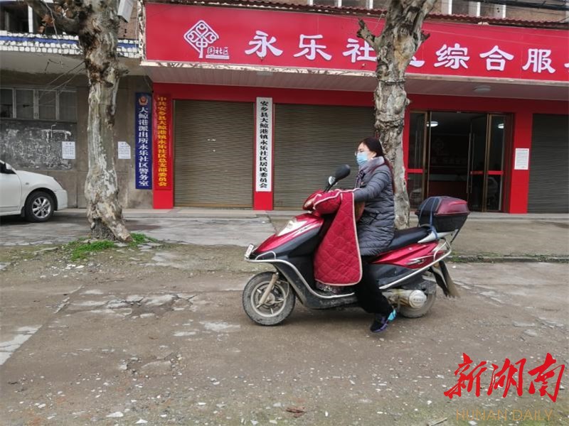 湖南日报·华声在线2月3日讯(通讯员 陈银生 周训刚 余芳)2月3日上午,安乡县大鲸港镇永乐社区综合服务中心,镇人大代表、镇优秀党员、妇女主任屈中兰在笔记本上记完台账还不到10点,就骑着摩托车,载着早就备好的红菜苔、胡萝卜、大蒜果、大蒜苗、生姜、蘑菇和卫生巾等生活必需品,赶往居家观察的雷家。这是大年初二以来,屈中兰第9次往雷家运送生活必需品。