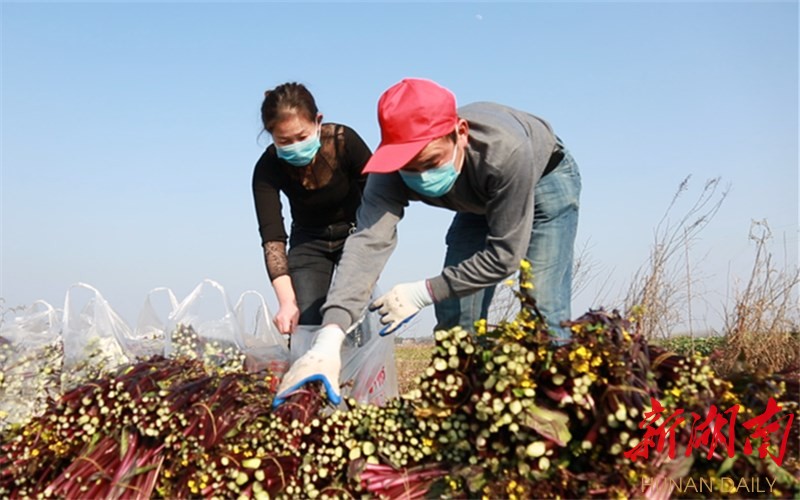 这批蔬菜的采摘人员都是由协会会员、当地农户、下岗职工、三江园林的员工组成。他们每人戴着口罩,不收一分钱的报酬,有的人都是自带盒饭,这些义工利用2天时间,把30吨新鲜红菜苔、卷心菜,从地里釆摘然后运到冷冻库和工棚,再一件一件的搬到车上去。