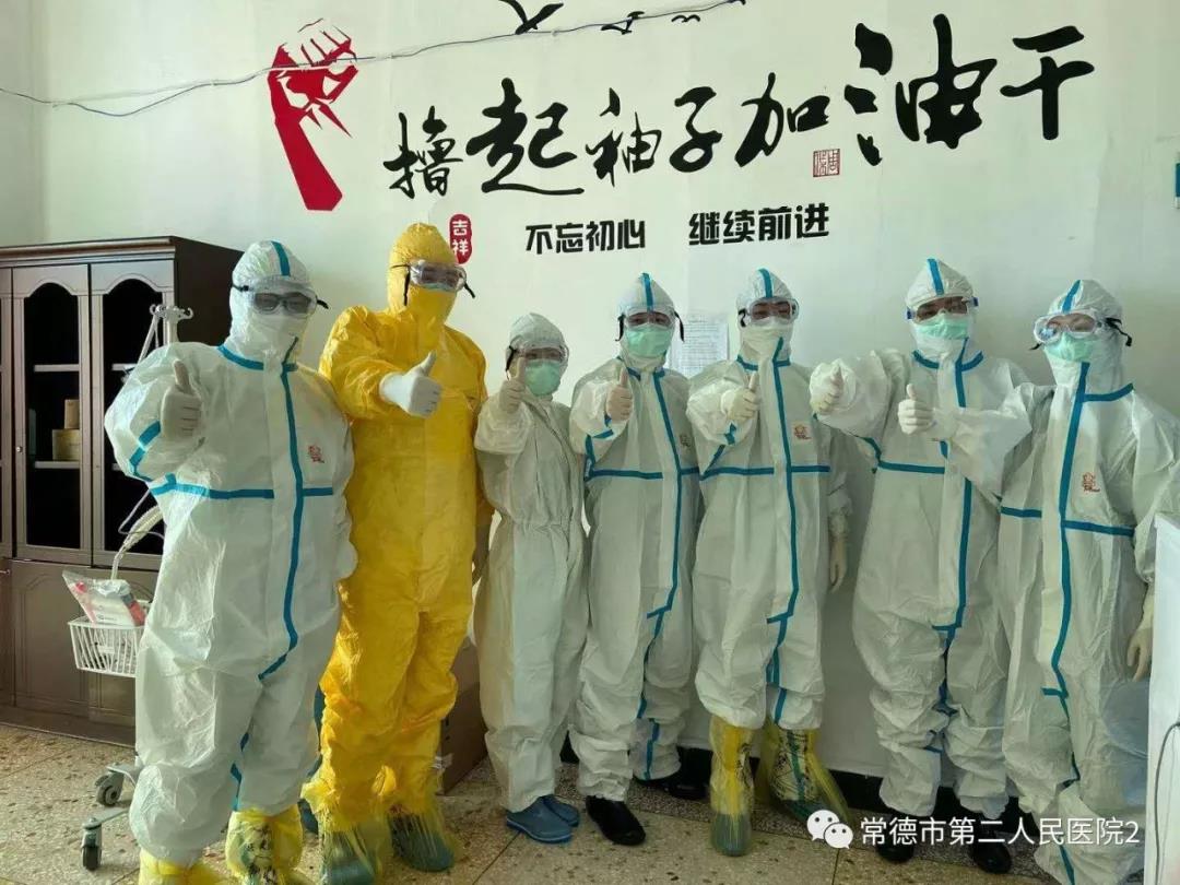一方有难,八方支援。随着病人的增加,常德各地区的医院都纷纷派来医院专家、护理骨干支援。常德市第一人民医院、常德市第一中医医院、湘雅常德医院、常德市第四人民医院、汉寿县人民医院、澧县人民医院、安乡县人民医院、桃源县人民医院、石门县人民医院支援队都陆续前来,让原ICU 的医护人员感受到了满满的温暖,我们并不是单打独斗,常德地区最强救治团队都汇集在这里,一起战斗,共同与病毒做斗争,与死神抢人,为常德人民的健康保驾护航。