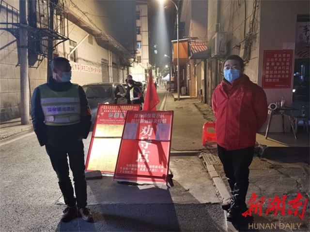 由于防控到位,当前安乡县疫情风险降级,但疫情防控没有松懈。县城依旧设立多个劝导点,劝导过往市民佩戴口罩,对外来人口排查管控。在城中心长寿巷入口处,记者看到多名党员干部和志愿者在值守,劝导居民不要扎堆。在林城国际小区,业主和物业一起值守,共同守护家园。