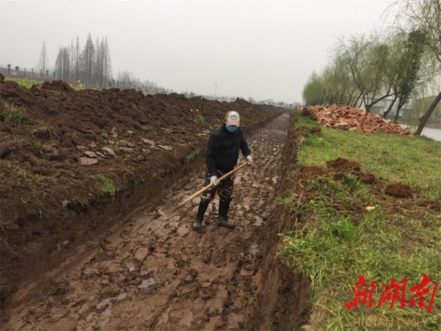 虎渡河下游的三岔河镇梅家洲村,玖源生态农庄内,春耕生产也是热火朝天。挖机正在开挖沟渠,20多名工人在地里除草。玖源生态农庄是一个集农业生产、生态康养、餐饮住宿等于一体的田园综合体。除拥有5000亩水稻基地外,还拥有100亩梅园。当前正是梅花盛开的季节。受疫情影响,梅园及餐饮住宿暂停开放。庄园相关负责人张妹说,梅花香自苦寒来,疫情终究会过去。待疫情消退后,将按原计划新增投入建设米仓,确保大米品质。
