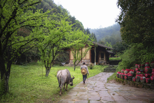 这幅画的下笔着墨处,便在桃花源镇汤家山村。这里以前是个典型的贫困村,年轻劳动力大都外出务工,留守村民靠传统耕种维系生活。2018年,汤家山村抓住全省农宅改革试点契机,发放了全省第一本农宅三权分置使用权证,结合桃花源旅游管理区出台的农村宅基地居农宅合作社。汤家山村采取“合作社+公司+农户”的发展模式,流转农户农房及宅基地使用权,打造特色民宿产业集群。通过与各大旅行社深度合作,开设旅游专线送客入村,游客们欣赏田园风光、体验采摘乐趣、品尝农家美食、选购农副产品,轻松做到好看、好吃又好玩。