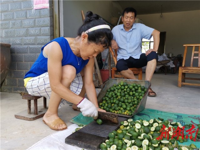 记者来到汉寿县易地扶贫搬迁八斗丘安置点,贫困户张冬香正在家里忙得不亦乐乎。她将一大早从自家果园里捡回的25公斤枳实,逐一切割后摊开晾晒,香气四溢。“合作社给我们贫困户的收购价,每公斤多出4元。”张冬香感慨地说,一家四口2017年搬进新房,新栽的枳壳树也于去年挂果,成了摇钱树,今年预计收入1万元。