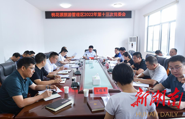 6月21日下午,桃花源旅游管理区召开2022年第十三次党委会,传达学习省、市重要文件讲话精神,研究讨论党务工作、绩效考核和人才工作,推进部署全区干部联企业“送政策、解难题、优服务”工作及沅水干流历史尾堆清理工作。区党委全体班子成员出席会议,各议题相关单位主要负责人列席会议。