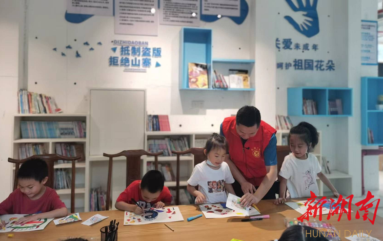 7月1日上午,在武陵区芙蓉街道落路口社区天源星城小区的“四点半学堂”里,青年党员志愿者张文滨正在给放暑假的孩子们上绘画课。课前,他先为孩子们介绍了“七一”建党节的由来与相关知识,然后鼓励孩子们充分发挥想象,大胆勾线、涂色,画出自己满意的作品。“以这种方式为党庆生,我感到很自豪。”张文滨说。