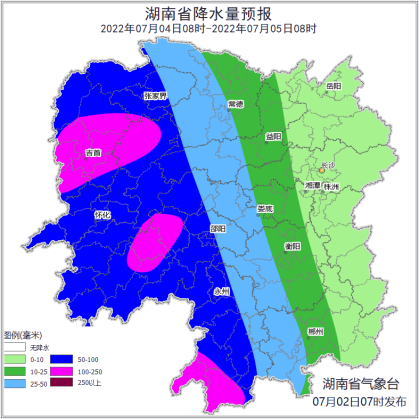 7日,湘西州、张家界、怀化、常德西部、益阳西部中雨,局地大雨。