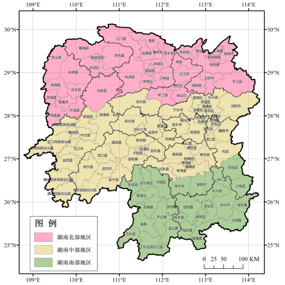 湖南北部(简称湘北)地区:岳阳、常德、张家界、益阳北部(资阳区、赫山区、南县、桃江县、沅江市)、怀化北部(沅陵县)、湘西州。