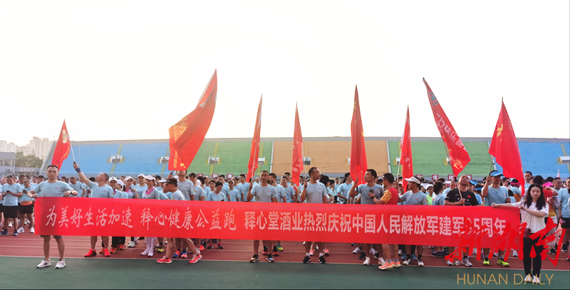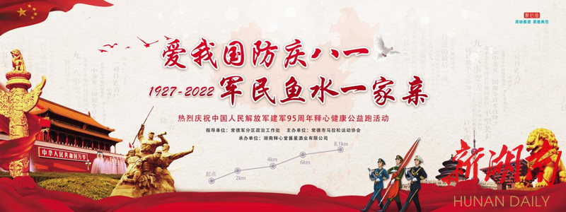 华声在线8月1日讯(通讯员 袁世雯 郭津)为庆祝中国人民解放军建军95周年,扎实做好拥军优属、拥政爱民工作。7月31日,由常德市马拉松运动协会主办、常德军分区政治工作处指导、湖南释心堂酱星酒业有限公司承办的“爱我国防庆八一,军民鱼水一家亲”8.1公里健康公益跑活动,在市体育运动中心举行。