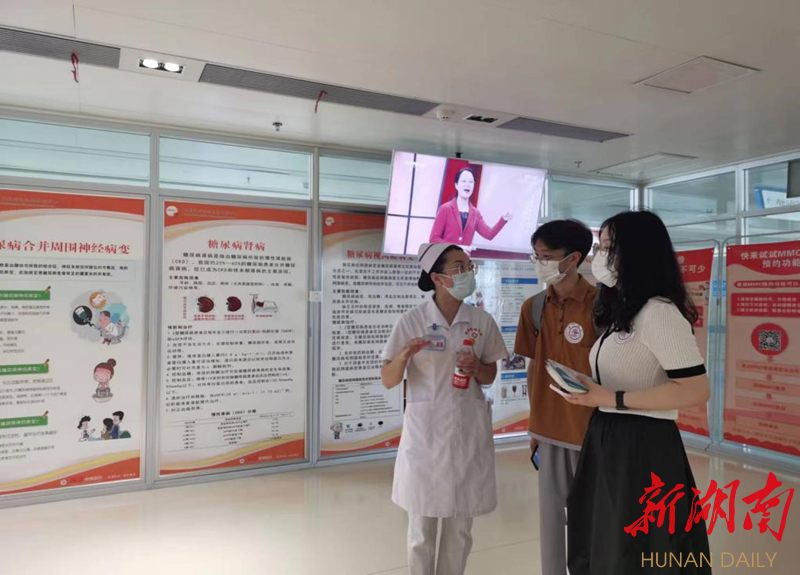 近日,上海交通大学医学院“荣昶-博医”卓越医学生培养计划暑期社会实践团成员,在湘雅常德医院展开了以“智慧医疗 守护健康——常态化疫情防控下互联网医院发展模式探究”为主题的实践活动。湘雅常德医院副院长罗一凡、信息中心主任胡芳华、医务部部长黄炯、护理部主任贺连香、信息中心主任胡芳华参与学生座谈并接受访谈采访,与实践团成员涂伍孜、邹振宇亲切交流并指导团队开展实地调研。