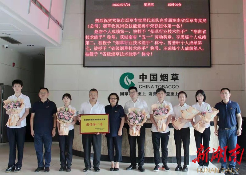 今年6月,赵杰带领团队参加首届湖南省烟草专卖局(公司)烟草物流岗位技能竞赛,他既当参赛员,又当教练员。白天,赵杰组织队员学习行业物流工作要点,讲解难点,组织模拟面试和回答问题演练,深夜,他会复盘白天学习的内容,设计第二天的学习方案。功夫不负有心人,团队获得了技能竞赛团体第一名的好成绩。