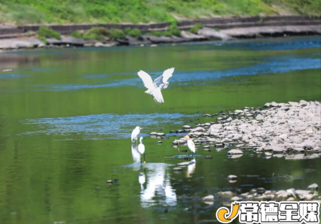 (8月9日15时许,桃源县黄花井机埠雨水排口一群白鹭正在悠闲觅食。2021年9月26日,长江经济带生态环境警示片暗访组反馈这里有大量污水直排新河问题。经过一系列整改措施,目前,黄花井机埠已经实现晴天无生活污水直排新河、雨季溢流污染明显减少与改善的要求。张铭齐 摄)