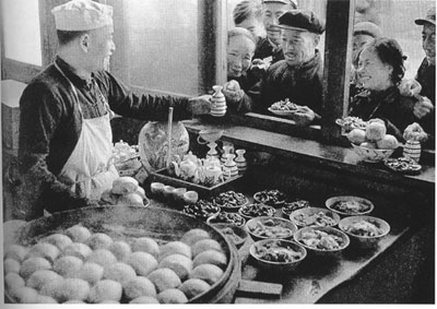 人们在公共食堂领馒头