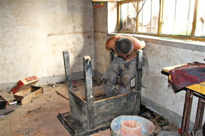 玻璃窗被用报纸、破布糊起来,甚至没有阳光可以透入的缝隙。52岁的刘跃贵,就在房间里的笼子中。笼子由拇指粗的螺纹钢焊接而成,一米五高,他无法站立,或坐或卧。