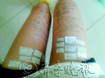 “两手准备”让记者吃了一惊。交谈中,小孙给记者看了一张她存在手机里的照片,直接把记者震住了。图片很简单:一双大腿和满腿的小抄。