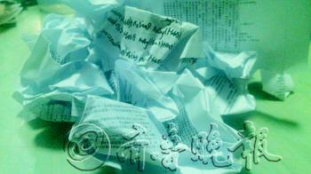在一间考场,丢在地上的一堆小抄更是让人默然。