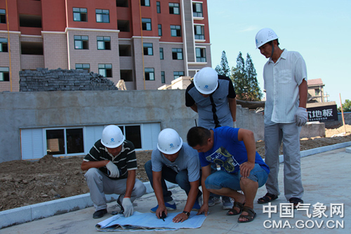 近日,湖北省潜江市防雷中心技术人员深入泽口经济开发区建设工地开展防雷技术服务,跟踪掌握防雷工程施工进度和质量,提供技术服务,现场解决问题,并对防雷工程进行了技术检查检测和分阶段验收。图为技术人员开展防雷服务。