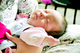 富平被拐卖的来家小孩在妈妈怀里熟睡。