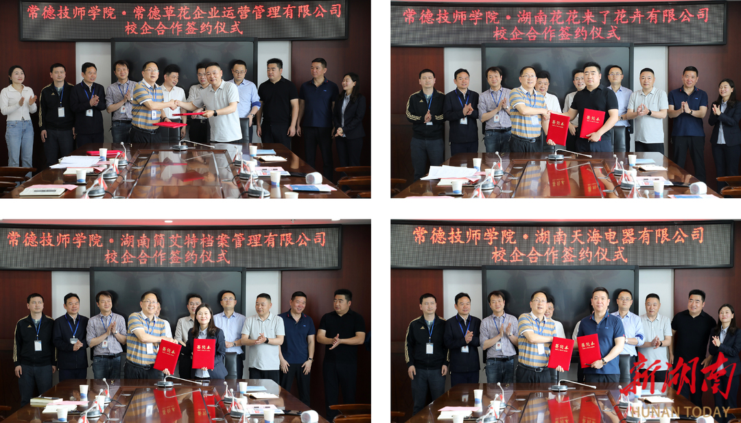 4月17日,常德技师学院与湖南武陵互联网文化创意产业园及湖南天海电器有限公司、常德草花企业运营管理有限公司、湖南花花来了花卉有限公司、湖南简艾特档案管理有限公司举行战略合作签约仪式,进一步深化产教融合,推动互联网文创产业人才培养与技术创新,为区域经济发展注入新动能。