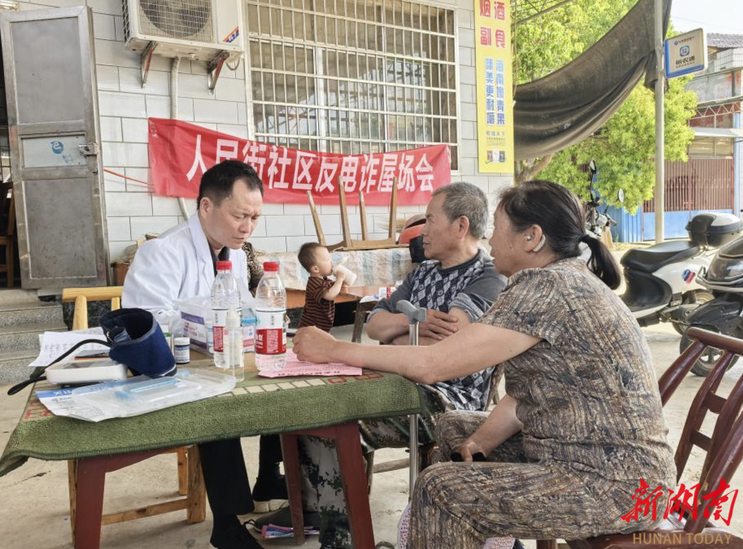 近日,临澧县安福街道人民街社区举办了一场别开生面的反诈宣传屋场会。不仅为居民送去实用的反诈知识,还联动社区卫生室开展健康义诊服务,让群众在家门口享受“一站式”便民关怀。