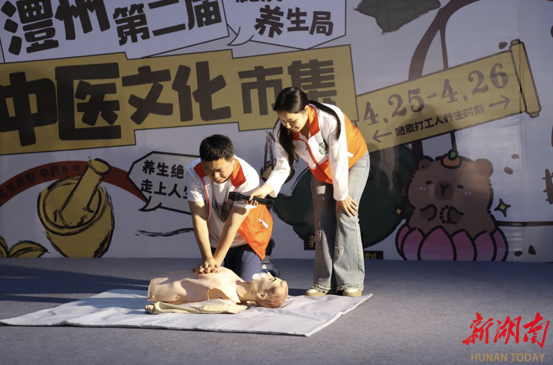 在膏方展示区,八种特色膏方揭开神秘面纱,专业讲解搭配现场试吃,不少市民当场领取夜市福利,为健康提前“囤货”。中医药文化区,图文并茂的展板讲述名医故事,人体模型与经典医书让生涩理论变得直观可感。在中药材体验区,鹿角、檀香等药材陈列台前,市民亲手研磨药材,触摸传统中药的肌理与温度。急救体验区内,专家团队手把手教学心肺复苏等急救技能。
