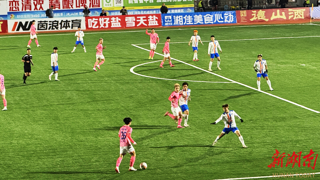 湖南日报·新湖南客户端11月22日讯(记者 李杰)今晚,常德市体育中心人潮如海、座无虚席,湘超常德队主场迎战益阳队。经过双方队员激烈角逐,常德队4:0大胜益阳队。