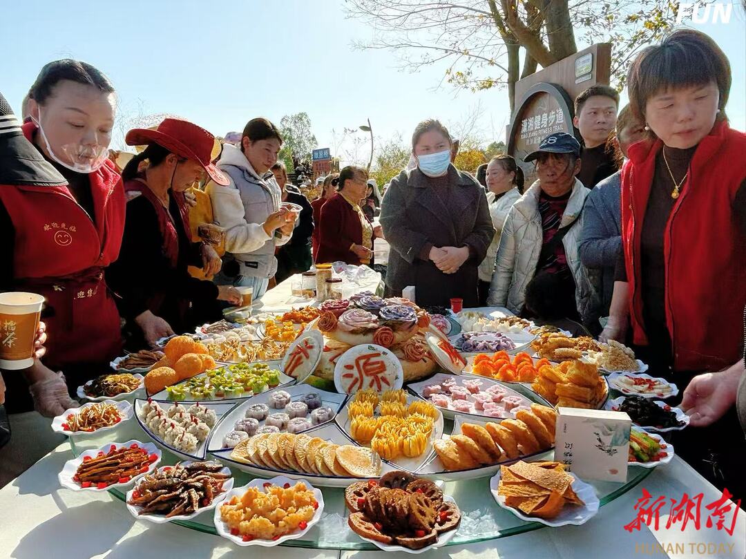 下午举办主会场活动,集文化展演、技艺展示、互动品鉴于一体,将气氛推向高潮。在桃花源古镇南门广场,14个擂茶体验区前排起长队,在广东客家擂茶展位前,传承人一边擂茶一边向游客讲解制作要领,吸引众多游客拍照打卡。