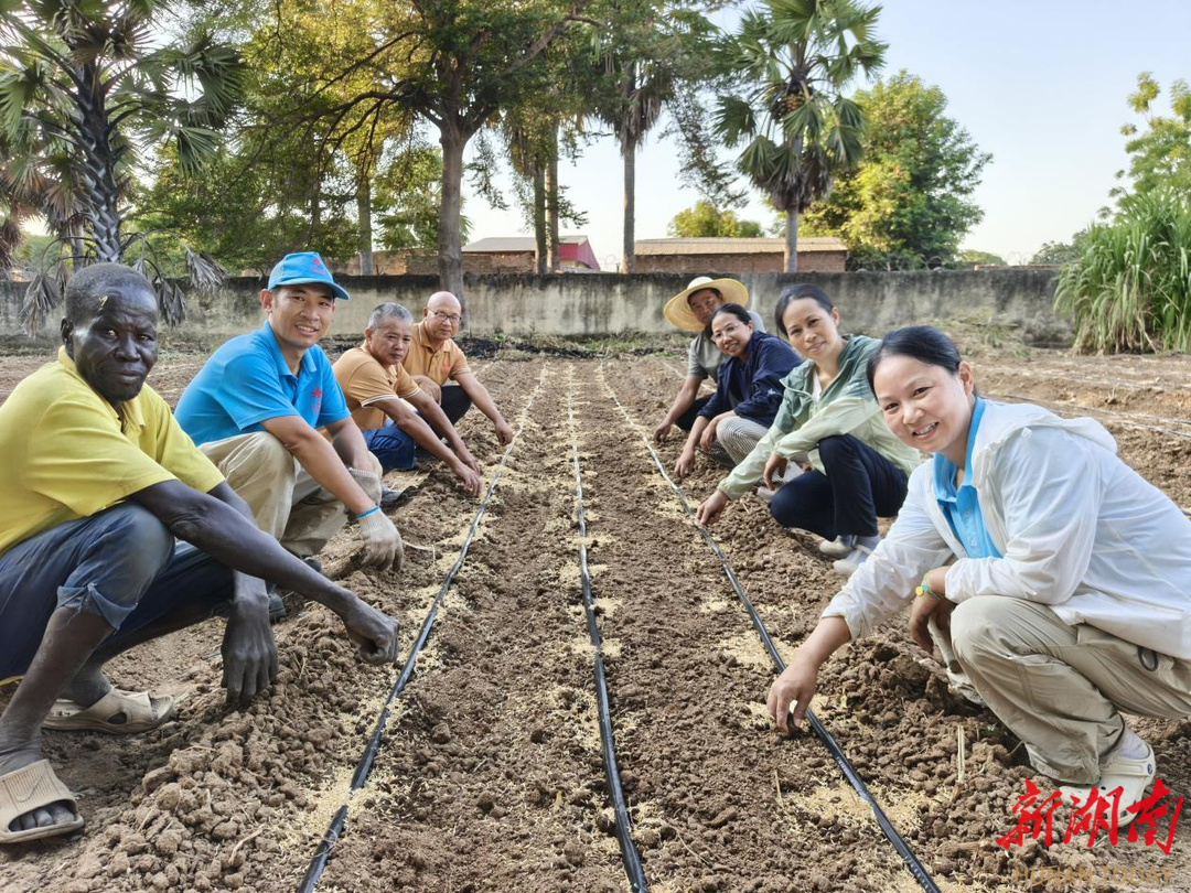 湖南农业专家在示范操作旱作物引种试验及滴灌系统