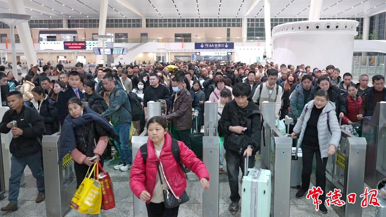 车站内外随处可见推着行李箱、拎着大包小包的旅客。进站口,人群如潮水般涌入,候车大厅人头攒动。据悉,目前车站的返程客流以外出务工人员为主。今年春运,常德火车站增开多趟临客,极大地方便了外出务工的旅客。