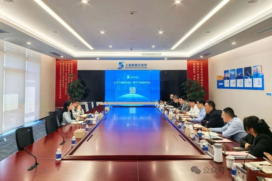 在上海数据交易所,考察团参观数据交易所展示大厅,详细了解平台建设、运营模式、数据交易流程、数据要素确权、价值挖掘及市场化配置等情况,并围绕数字经济产业布局、数据要素赋能实体经济、区域数字化转型路径等内容与上海数据交易所相关负责人进行了深入交流。