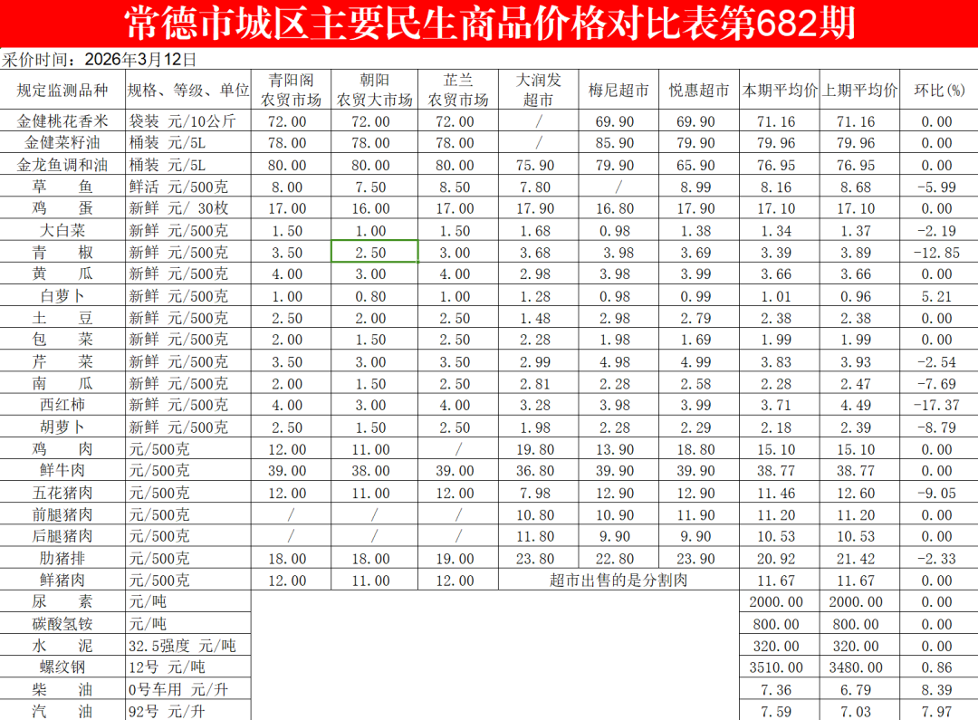 为方便群众了解民生商品市场价格动态,常德市发展改革委通过“常德发改”微信公众号发布近期市城区主要民生商品价格情况。